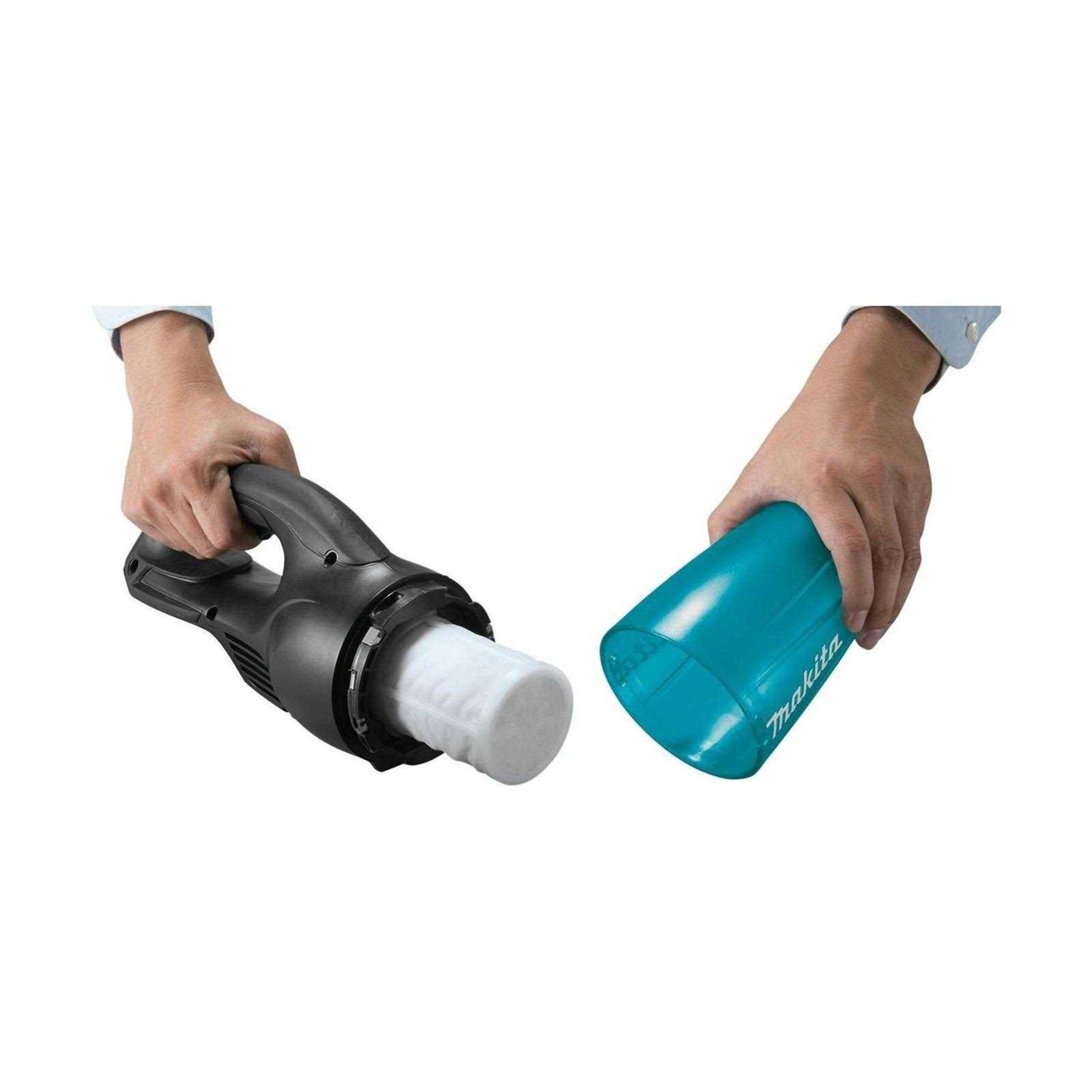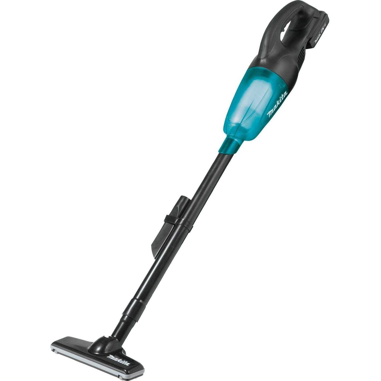 Up to 15 minutes of continuous use from a single, fully charged 18V compact Lithium Ion 2.0Ah battery Redesigned floor nozzle for improved maneuverability and debris collection Strong suction power for fast and efficient cleaning. Powerful motor delivers up to 46 CFM Bangles’ 2 stage cloth filtration system allows for easier cleaning and quicker debris disposal Increased storage capacity for longer time between waste disposal. Only use genuine Makita batteries and chargers Weighs only 2.7 pounds. With battery for reduced operator fatigue The Makita 18V compact Lithium-Ion cordless vacuum kit, model XLC02R1B, is a compact and powerful cordless vacuum with strong suction for fast and efficient cleaning. At only 18-3/4 in length This compact vacuum can be used as a hand-vac, or with the floor nozzle extension for floors, carpets, and hard-to-reach spaces. The XLC02R1B is a kit and includes the fast-charging 18V compact Lithium-Ion battery and efficient Rapid optimum charger. Its part of Makitas expanding 18V Lithium-Ion system, the worlds largest cordless tool system powered by 18V Lithium-Ion slide-style batteries. Makita 18V Lithium-Ion batteries have the fastest charge times in their categories, so they spend more time working and less time sitting on the charger. For improved tool performance and extended battery life, Makita created Star protection Computer controls. Star protection is communication technology that allows the Star Protection-equipped tool and battery to exchange data in real time and monitor conditions during use to protect against overloading, over-discharging and overheating. For increased versatility, the tool can also be powered by Makita 18V LXT and compact Lithium-Ion batteries with the Star symbol on the battery indicating Star protection inside.