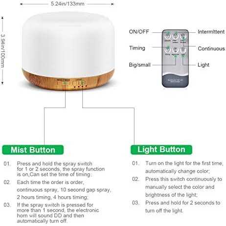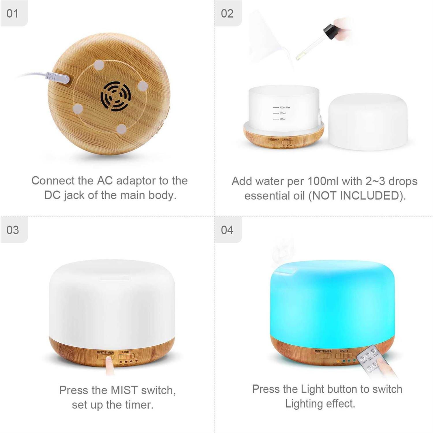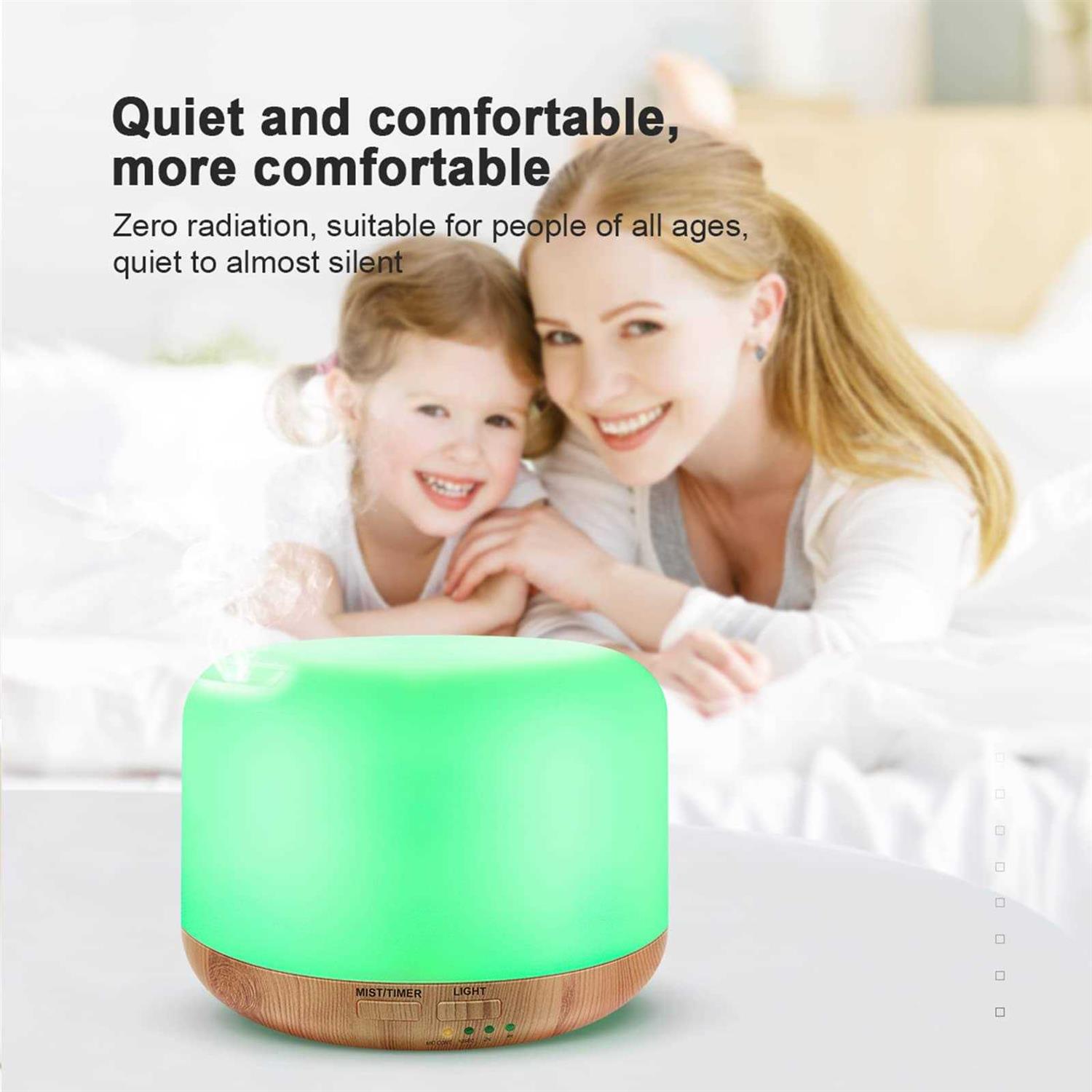 Difusor to Improve Air Quality: The cool mist aroma diffuser adopted the ultrasonic technology to create a soft environment by adding essential oils.Use it to improve your home’s atmosphere quality, cover the smell of pets or smoking, and protect your family from excessively dry season, dust, and more! It suits salon,bedroom,large room, living room, nursery, office, and so on. Relaxation Atmosphere: This electric diffuser is perfect for every home, office or yoga studio so you can create a calming atmosphere. This device will purify and humidify the air so that you no longer suffer from dry skin and lips.The diffuser will create the perfect environment for you to breathe and sleep better, relax and feel better than ever!