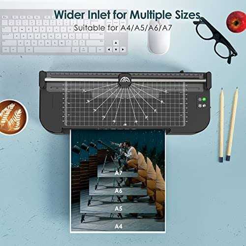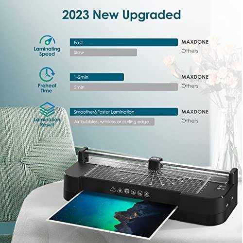 4-in-1 laminator machine: Our laminator comes with 20 laminating sheets(5 A4, 5 A5, 10 A6), 1 built-in paper trimmer and 1 corner rounder, maximizing your convenience, also perfect for preschool, home, classroom, and office laminating needs. DIY laminator kit: The thermal laminating machine combines an exclusive corner rounder, creating smooth corner curves. The easy-to-handle paper trimmer makes a neat and beautiful cut. The fine-quality photo frames are ideal for teacher-classroom organization. Fast warm-up laminator: Enjoy a well-organized no noise laminating process with a rapid 1-2 minutes warm-up time and 320 mm/min laminating speed! Thermal laminate & cold laminating in one. 2022 Upgrade jam prevention lamination machine: Push the ABS button of the thermal laminator to release the jammed laminate paper. It resolves paper jam issues effectively. Our second-generation new personal laminator makes the laminating pouches without bubbles. Wider inlet for multiple sizes: The basics laminator for teachers features a 9-inch (230mm) throat entry, works with 120mic(2x 60mic) to 200mic(2x100mic) pouches, and is great for a photo, letter, painting, card, business, menu, 8.5 x 11 size papers laminating.