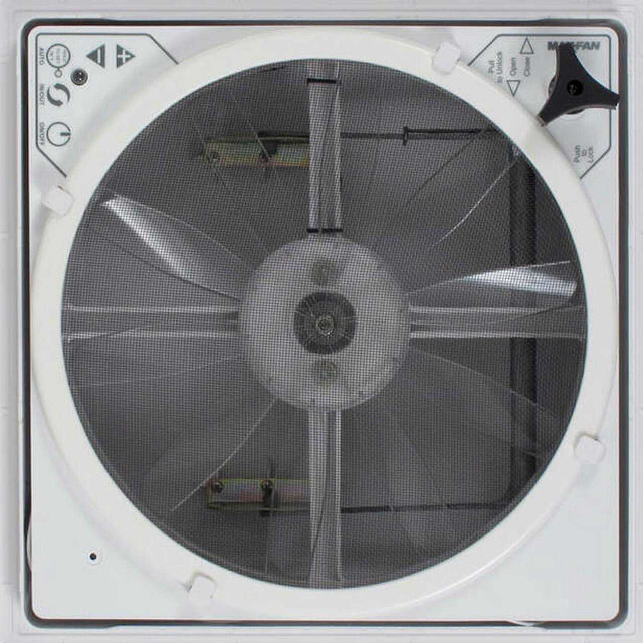 Open-Box — The MaxxFan Deluxe is the only complete RV ventilation system that incorporates a vent, fan and rain shield in a single all in one unit. Twin lifting arms, no more lid fluttering in high winds or when driving. Features a powerful, fuse protected, Long life, sealed ball bearing, 12 volt fan motor and a 12″ 10-blade fan. Flush mounted, easy to clean keypad controls fan speed, thermostat, air intake and/or exhaust functions. Fits all standard 14″ x 14″ roof openings, all mounting screws and hardware included. Roof sealant must be purchased separately.