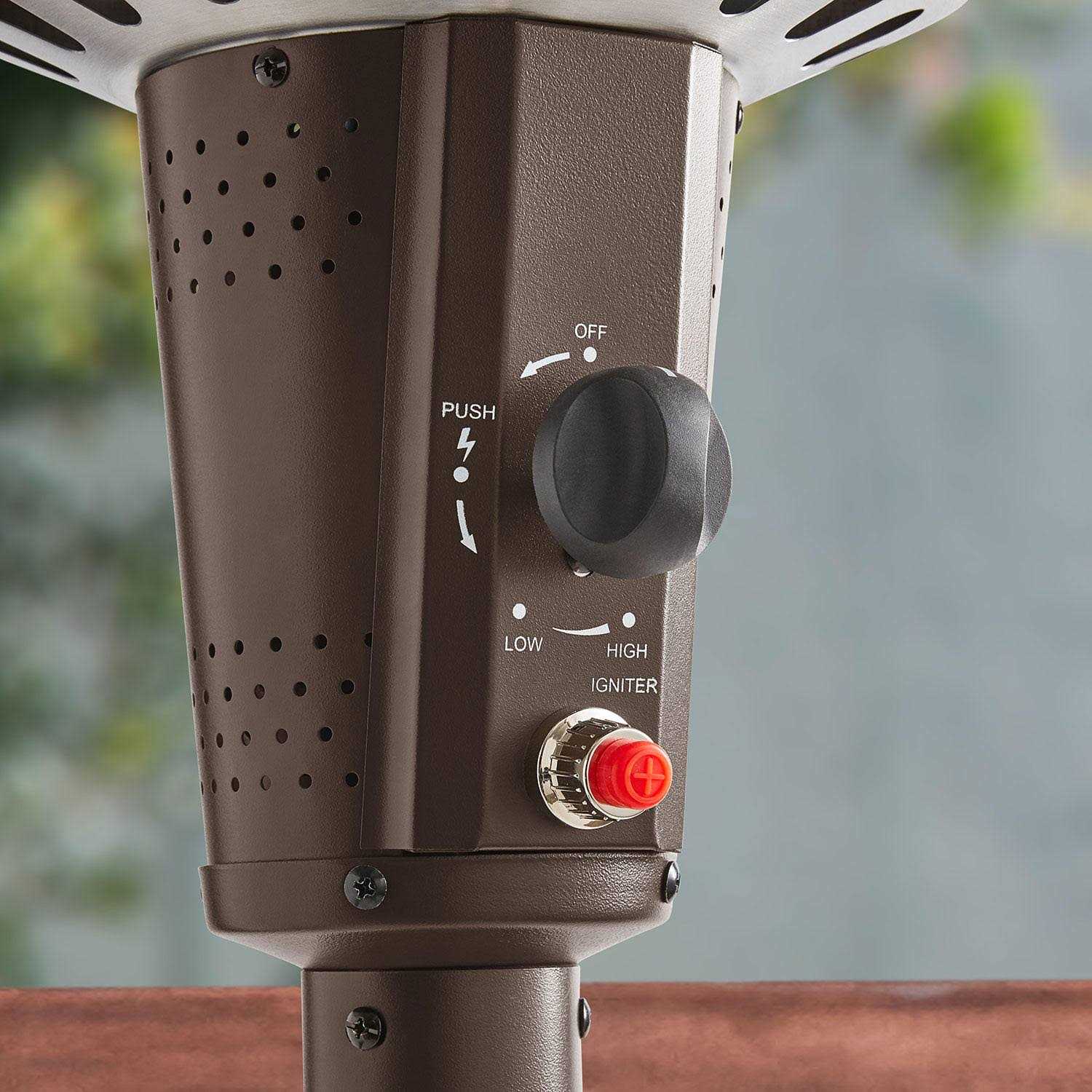 Boasting up to 50,000 BTUs in variable output, Member’s Mark Bronze Patio Heater with LED Table makes an ideal addition to any outdoor space. This heater features an adjustable table with LED lighting and a stylish, sleek design in a bronze powder-coated finish. The easy-start electronic ignition makes it a breeze to engage, with a range of heat settings from low to high. This outdoor gas heater provides heat up to 300 sq. ft. for optimal patio use. The patio heater’s easy-moving wheels offer convenient mobility.Warm Up an Outdoor AreaConstructed of durable stainless steel, Member’s Mark Patio Heater with LED Table is an ideal way to extend the outdoor dining and entertaining season. It makes any outdoor living or patio area warm and cozy–almost instantly–just like a fine dining experience. A weighted base provides stability. It’s also a great value for restaurant and business owners. The durable design is built to last and withstand the elements. Use with a 20 lb. liquid propane tank (not included).