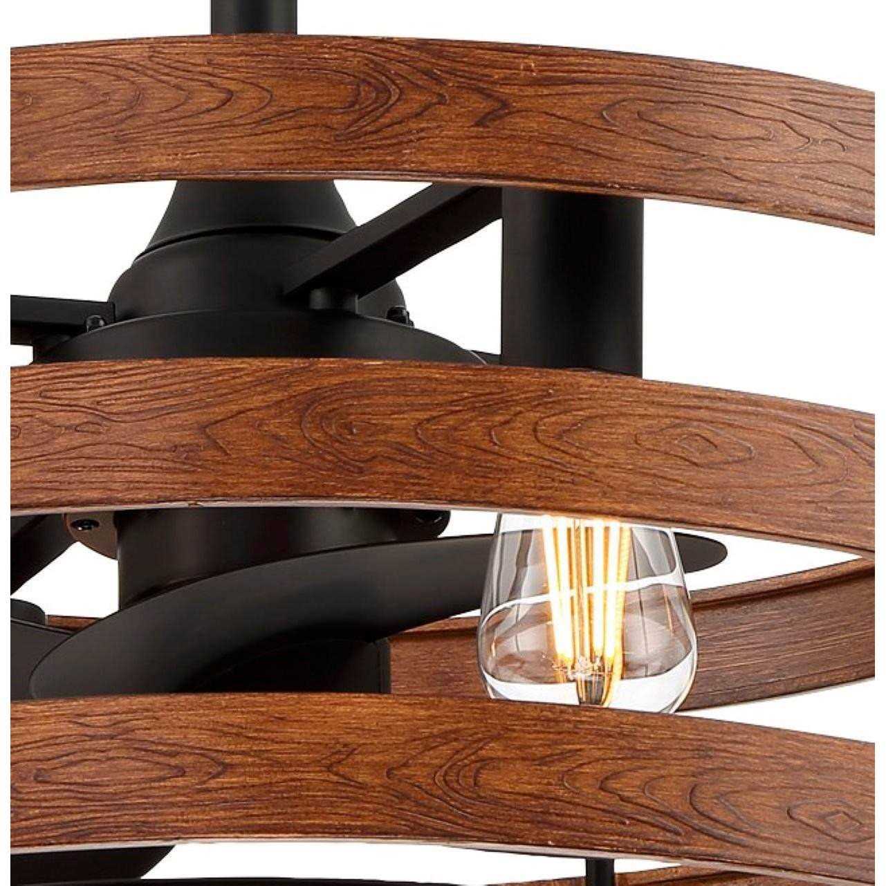 With a modern take on classic rustic design styles, the Audrey fandelier from Minka Aire is here to bring simple easy charm to your home’s interior spaces. Three bands in distressed koa finish create a look of strolling through a calm forest, which is paired with three coal finish molded ABS blades add a splash of modern elegance. Combining elements of a ceiling fan and a chandelier, this piece also included four LED bulbs, spread out within the interior of the fandelier. Use the included 3-speed full-function remote control to easily set both light and air movement to your standards.