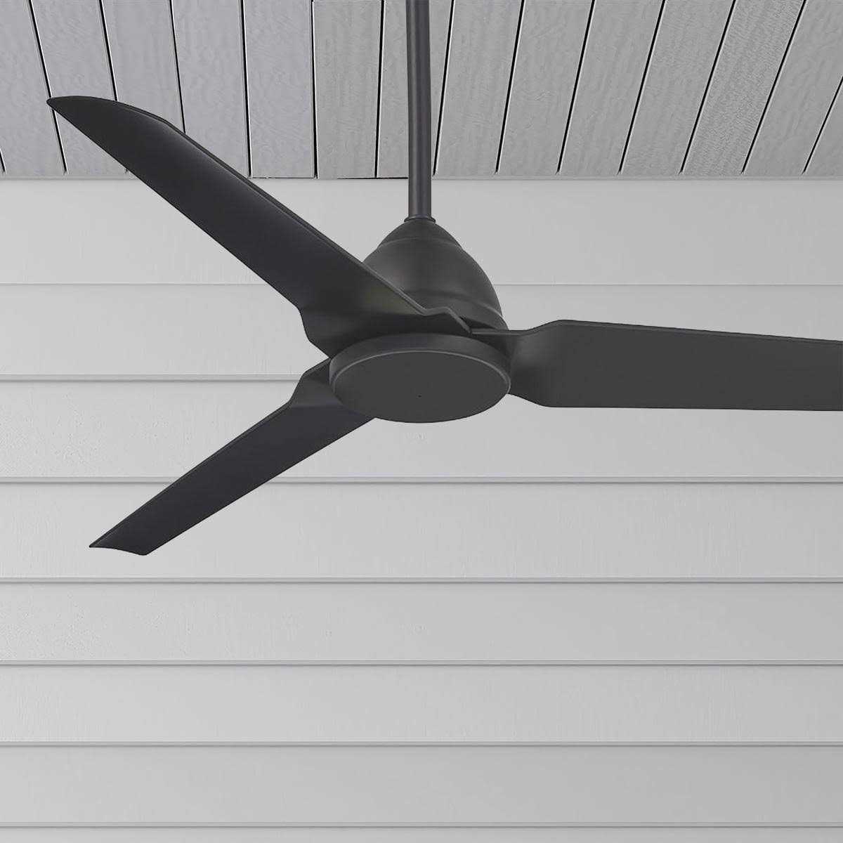 The Java Outdoor Ceiling Fan features a 153mm x 18mm motor, 54 inch blade span, and 14 degree blade pitch. Available with a Brushed Nickel motor with Silver blades or a Coal, Kocoa, or White motor with matching blades. Includes one 6 inch downrod and RCS213 three speed handheld remote with wall holster. Compatible with WCS213 wall control and Bond Home Smart WiFi Hub, sold separately. UL listed for wet locations.