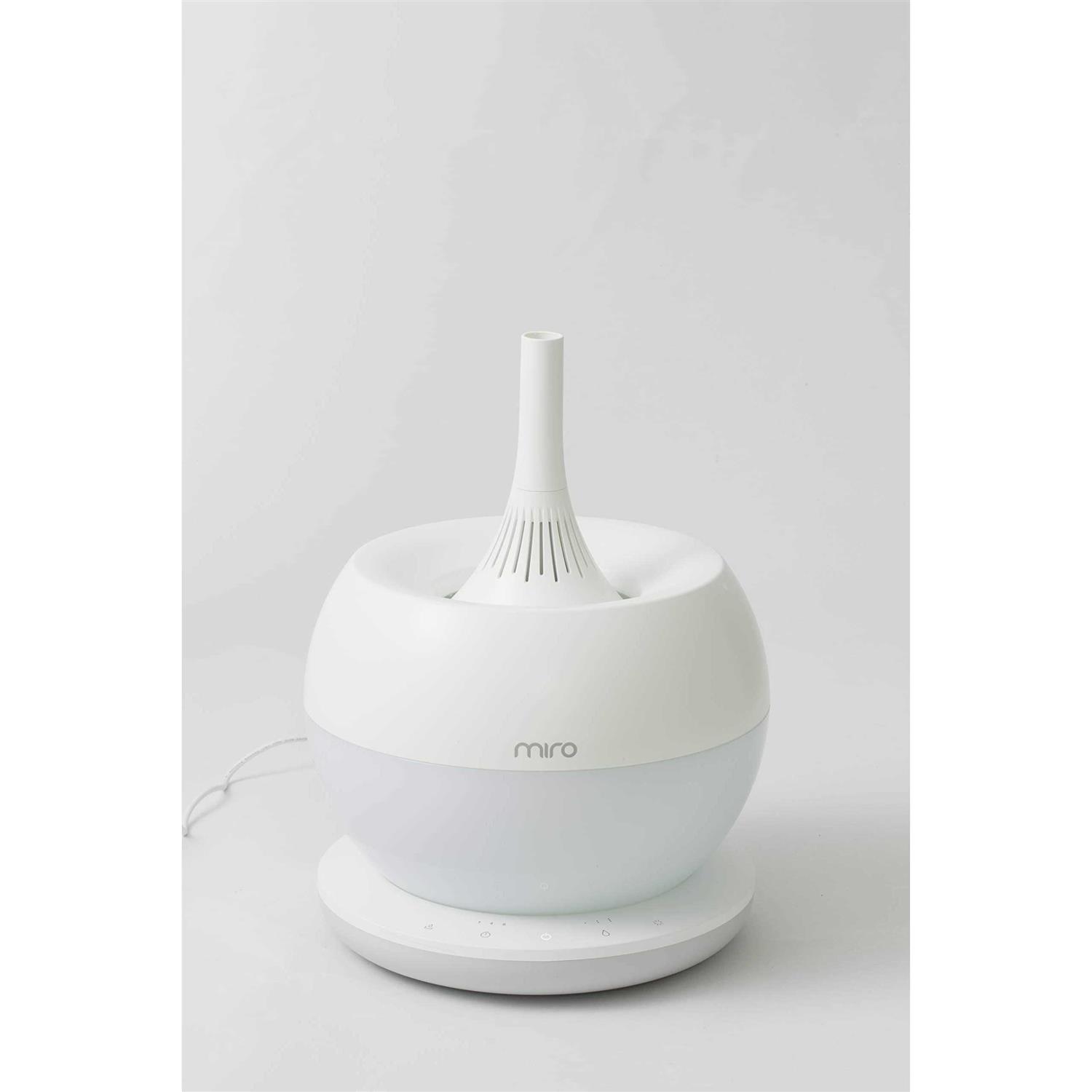 The Miro NR07S Humidifier will help you maintain the ideal Relative Humidity (RH) in your environment to put an end to all the effects associated with dry air like allergies and dry skin. This completely washable, modular design features a 1 gallon top-fill tank you can refill without turning off the unit. The NR08M opens in one motion for quick refills, easily dissembles for a thorough clean, and is a snap to reassemble after washing thanks to the built-in magnets. The NR08M delivers 8 hours of continuous operation at maximum power and more than 24 hours on the lowest setting per tank fill. You can easily control all the settings from the integrated touch-panel controls—including colorful, softly glowing LEDs that act as a mood lamp or soothing nightlight. Choose your favorite color, let it cycle through a rainbow multiple colors, or turn the lights off completely whenever you like.