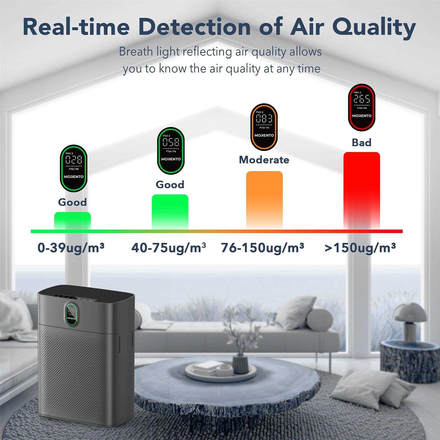 MORENTO Air Purifiers for Home Large Room Up to 1076 Sq Ft with PM 2.5 Display Air Quality Sensor