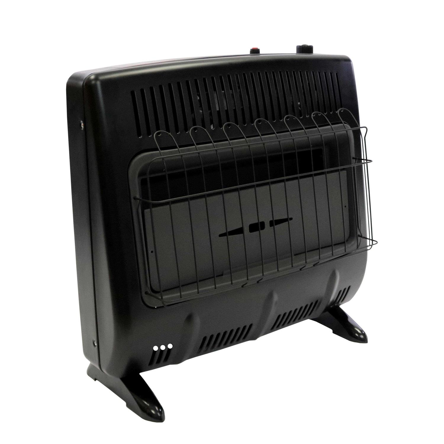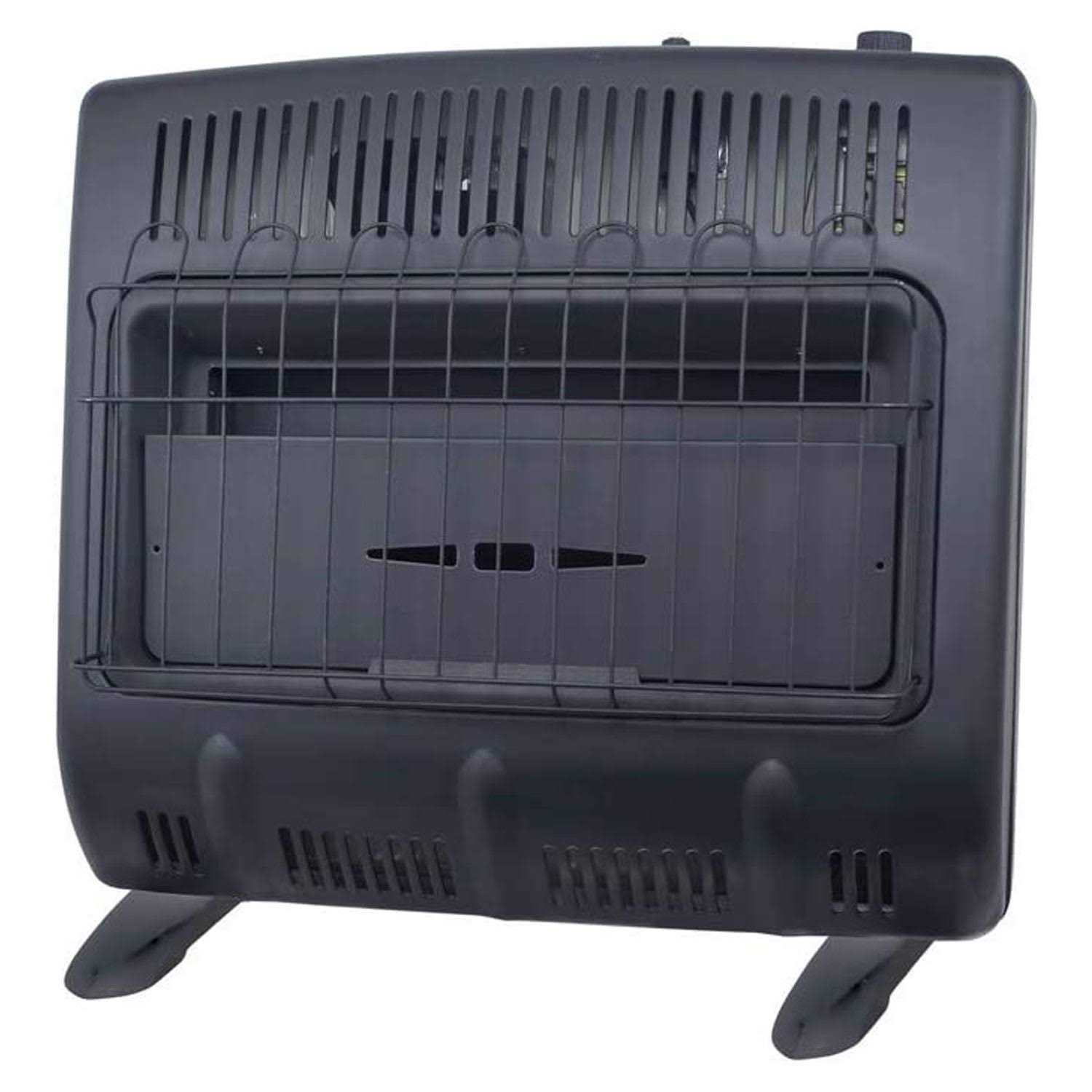 This Black Radiant 30,000 BTU Natural Gas Vent Free heater is the perfect supplemental heating solution, even on the coldest days. This heater is conveniently equipped with a thermostat for superior control of the temperature in your space. Also, with a battery powered electronic ignition, starting it is a breeze – battery included. This unit can be permanently mounted to the wall or securely fastened to the floor with included mounting brackets and fasteners. Multiple burner tiles utilize radiant heat, warming your space with the power of the sun. With a factory standard Oxygen Depletion Sensor (ODS), rest assured this heater will provide you with years of comfortable and safe heat.