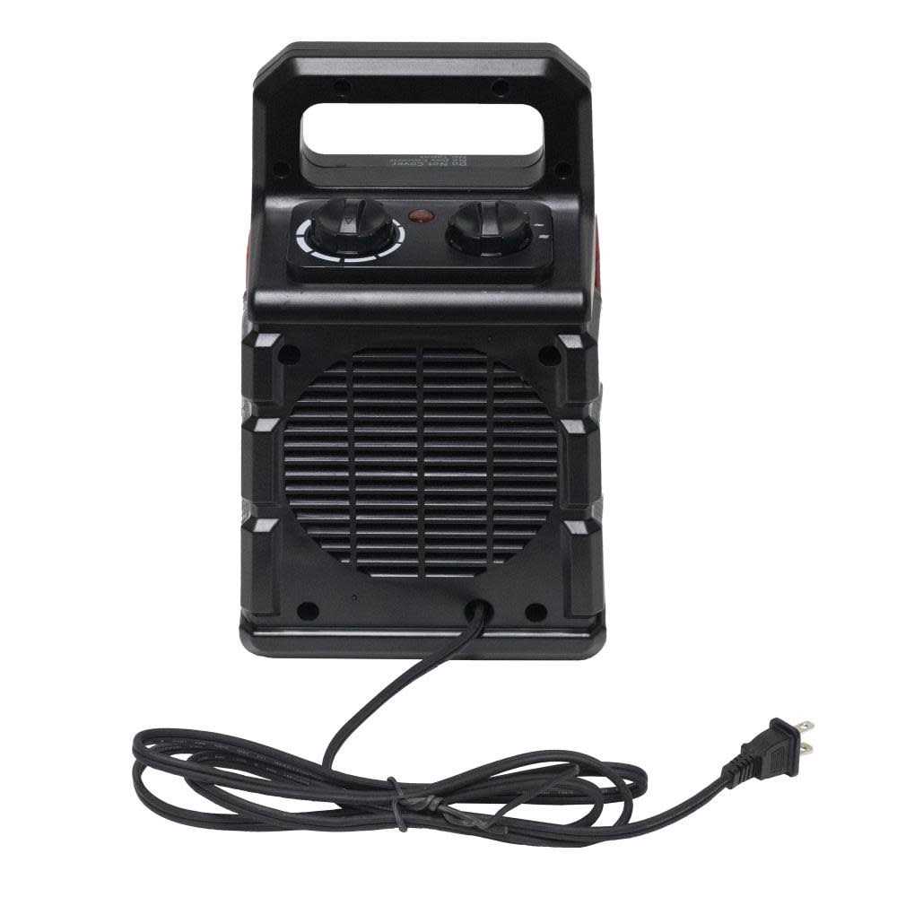 For a little extra heat, the Portable Forced Air Electric Heater will fit your needs. Its two heat settings provide up to 5,118 BTUs. Powered by a quiet fan, the warmth spreads to cover 170 sq ft. A small footprint and built-in handle keeps the heater portable. It is controlled with a thermostat so your space will stay comfortable at your desired temperature. Whether it is drafty at the office or you want some extra warmth while relaxing on the couch, the Portable Forced Air Electric Heater is your indoor heat source solution.