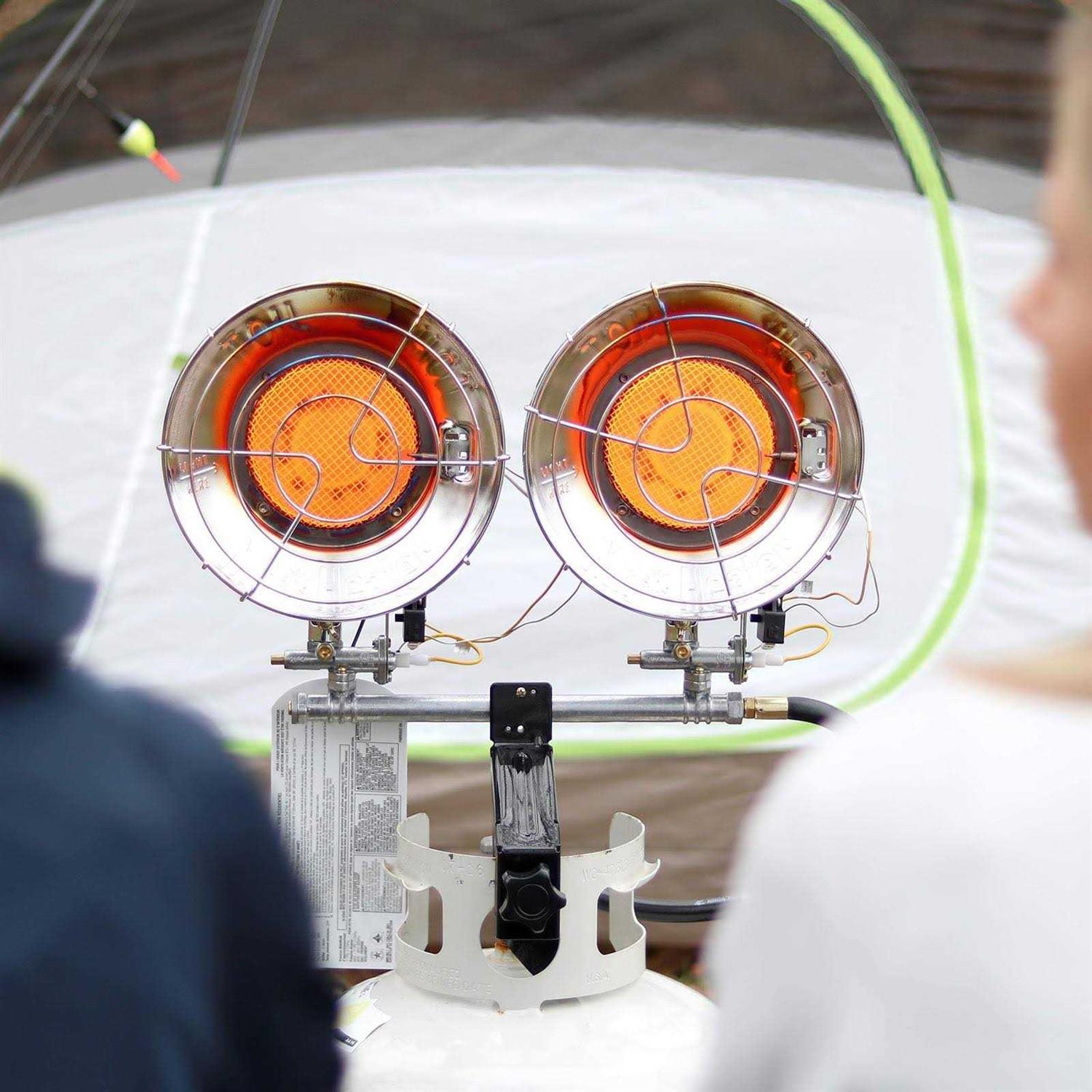 Radiant 10,000 – 30,000 BTU liquid propane tank top heater is the perfect solution for a variety of outdoor heating applications. Easy to use and quick to set up. Heater is constructed with high quality chrome and stainless steel components to deliver reliable heat on the go. Adjustable high-medium-low regulator and soft nose. Adjustable swivel head design pus heat precisely where needed. Higher grade mesh bring longer lasting durability. Two tip-over safety shut-offs. Operate one or two burners for multiple heat output combinations. Mounts on 20 lb. propane cylinder. No tool needed, hand wheel installation. All components replaceable. Up to 24 hour run time. Heating Area:1000 Sq. Ft., Dimensions:26-1/2 In. W x 17-1/4 In. L, Weight:40 Lb.