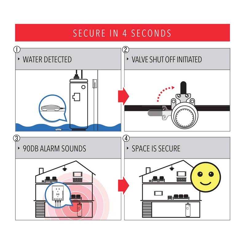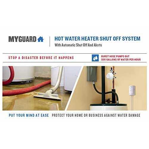Protect your home or business from water damage from your water heater and save money on your homeowners insurance Upon water detection, incoming water flow is automatically turned off – preventing costly damage from flooding Easy DIY installation – attaches to existing plumbing; compatible with lever-action ball valves only Simply install the unit and place the water leak sensor on the floor Loud 90dB continuous alarm when water leak occurs Put your mind at ease and save money on your Homeowners Insurance with the MyGuard Automatic Hot Water Heater Shut Off System! Simply install the unit and place the water leak sensor on the floor. When water is detected around your water heater, the valve shut-off is initiated. A 90dB alarm will sound and your space is secure!