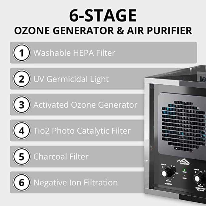 New Comfort Ozone Generator 6 Stage Air Purifier Cleaner HEPA UV