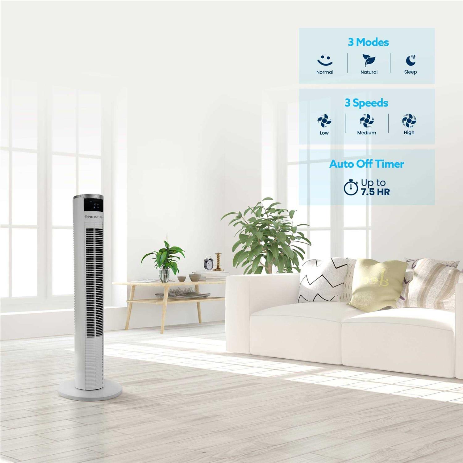 About The Item: Advanced Tower Fan – This Nexair Advanced Tower Fan, Is Created To Cool A Full Room Coverage With A 70 Wide Range Oscillation, This Tower Fan Powers 3 Speed Settings And Modes, For Customized Wind Motion, It Comes With A Full Functional Convenient Remote Control And Has A Auto-off Timer Upto 7.5 Hrs, Its Airflow Is Quiet, Gentle, And Extremely Comfortable. Quiet & Gentle Room Cooling – This Advanced Tower Fan Is The Best Option For Full Room Cooling, In Addition Its Built To Be .