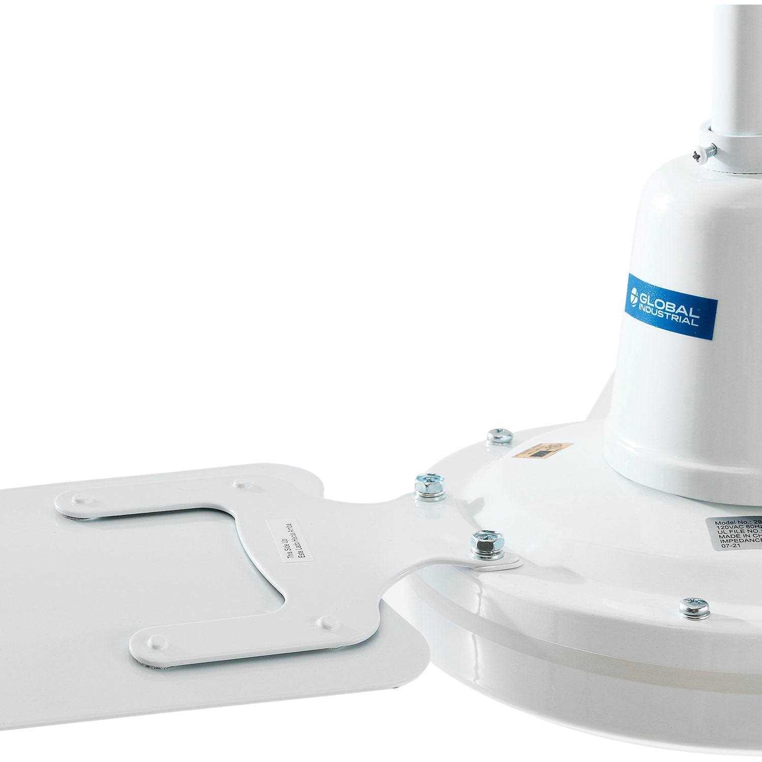 Provide cool air circulation from above with the Global Industrial 56 Industrial Ceiling Fan. It is suitable for warehouses, workshops, and office spaces. This industrial fan is designed to operate at 4 different speeds, offering degrees of low to high circulation depending on how much air force your environment needs. Permanently scaled ball bearing motor provides up to 9150 CFM.