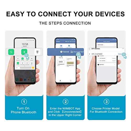 THERMAL LABEL PRINTER – The lightweight, handheld NIIMBOT D11 label maker uses wireless technology to design and print labels up to 15mm (~0.6 inches) wide from your phone device POWERFUL FUNCTIONS – It is support to print various texts, numbers, graphics, symbols, logos, barcodes, QR codes,etc. And intelligent recognition of voices and pictures. BUILT-IN 1200mAh RECHARGEABLE BATTERY – It can print continuously for 4 hours, and it can be used for 3 months on a single charge, which saves the trouble of long-term battery purchasing and replacement, and it’s also very environmentally-friendly. DESIGN YOUR OWN LABELS – The APP NIIMBOT contains various texts, graphic symbols and business icons,and our label paper has varieties of colors and styles to choose from, You can make your own product labels and QR code labels. PACKAGED – The NIIMBOT label maker comes with 1 Starter Tape, a built-in Li-ion battery, and an 18” USB cable.