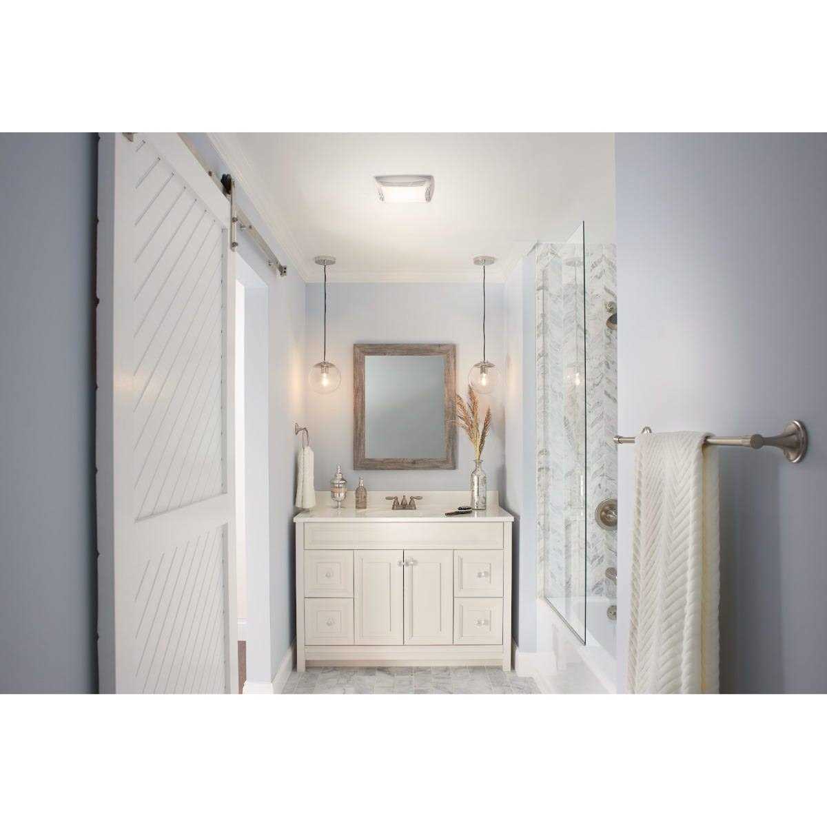 The NuTone Ventilation Fan with Light features square lens surrounded by a decorative white grille that coordinates with the most popular ceiling white paints. This design features a single E26 standard light socket allowing for flexibility to choose an A19 bulb that works best for the room and lighting preference. Powerful 80 CFM airflow effectively clears the air of humidity odor and airborne particulates and helps prevent mold and mildew. 80 CFM effective ventilation to remove moisture and reduce the risk of mold or mildew in most full baths 2.