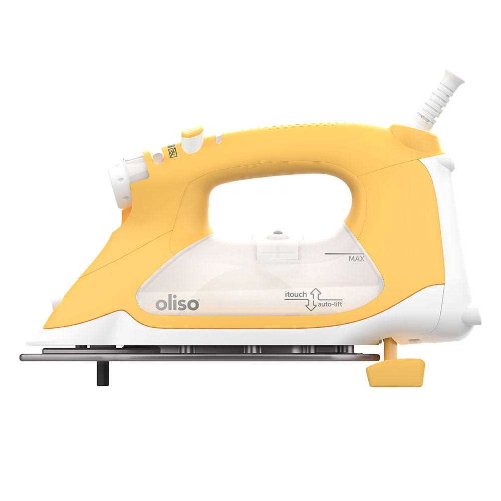 Oliso’s iconic SmartIron just got smarter! The new TG1600Pro Plus still features Oliso’s most-loved patented iTouch technology. Simply touch the handle and the iron lowers, ready to work. Take your hand off and the patented scorch guards lift the iron off the board preventing scorches, burns, and tipping. It’s not only safer, but it also saves time as well as your wrists! Other classic features include 1800 watts of power and horizontal or vertical bursts of steam. The TG1600 Pro Plus features a 30-minute extended auto-shut off for sewers and quilters, a 12.7 oz side fill tank, flat pressing surface, detailer tip, and a 12-foot cord for full range of motion. The new TG1600 Pro Plus ups its IQ with a new diamond ceramic-flowTM soleplate glides effortlessly over all fabric types, further enhances its even heat distribution and provides quick and easy clean up when using fusibles. Rapid responseTM triple play steam system makes the TG1600 Pro Plus steamier and hotter than ever! A new anti-scale system keeps the TG1600 Pro Plus working stronger and longer.