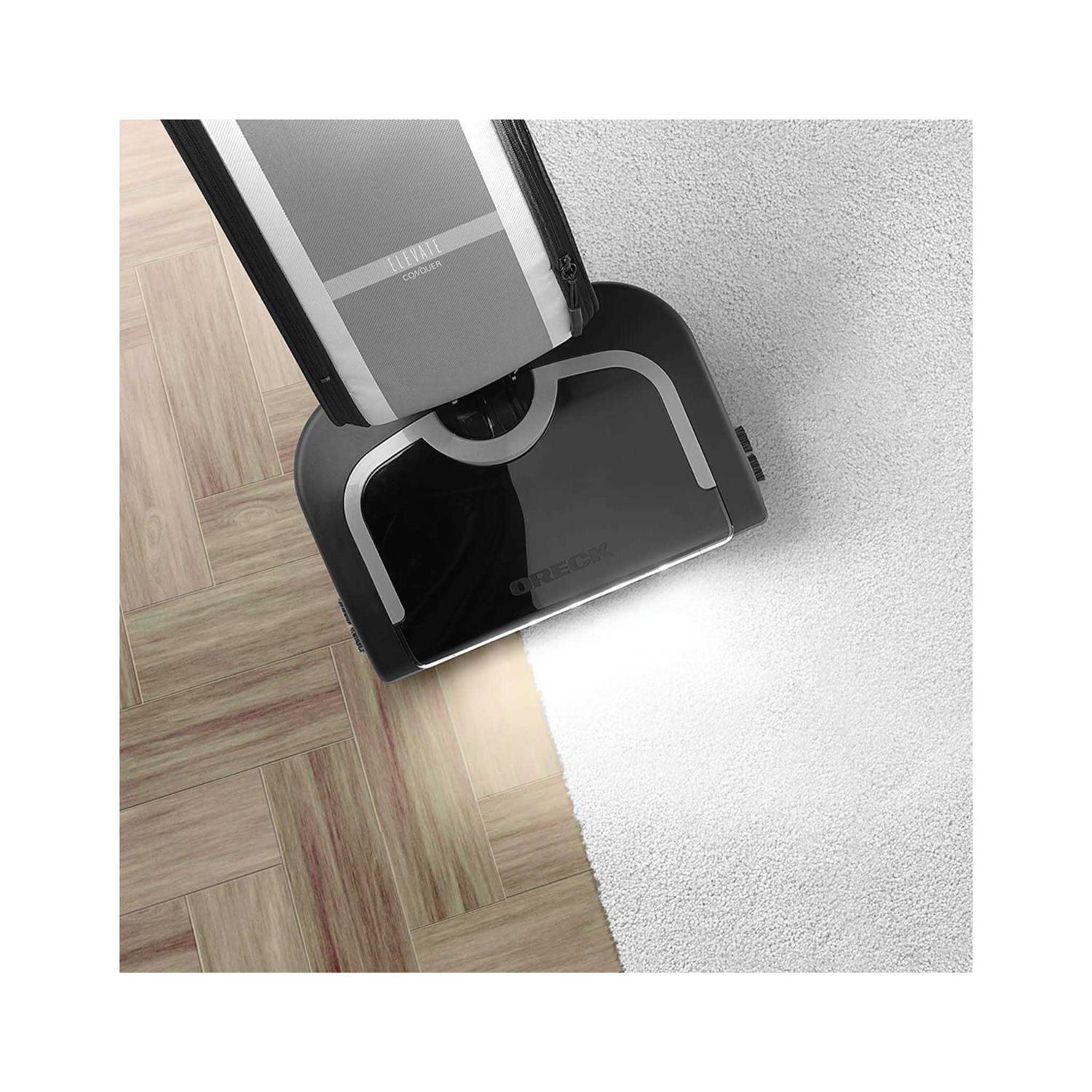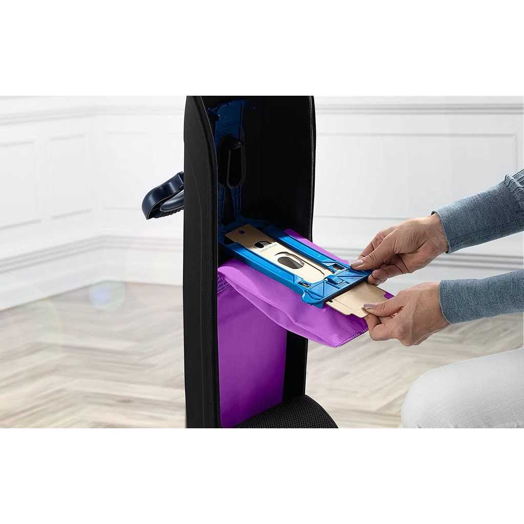 Elevate Conquer Unique Features View larger View larger SlimSwivel Steering Maximum Maneuverability and Powerful Performance for all floors. Easily pivot around and under furniture with its low profile design. Customize your Clean With two-speed fingertip controls that enable you to adjust speed based on your surface type. Superior Filtration Bag Hepa Media filtration traps at least 99.97% of particles at .3 microns including allergens mold spores pollen dander dust and smoke. View larger SaniSeal System Automatically seals to lock in allergens dust and debris. Lightweight Materials and Premium Design Combine to deliver maximum performance at half the weight of most vacuums. Full Access Low-Profile Design with Bright LED Headlights Finally reach under your furniture and see things you normally could not.