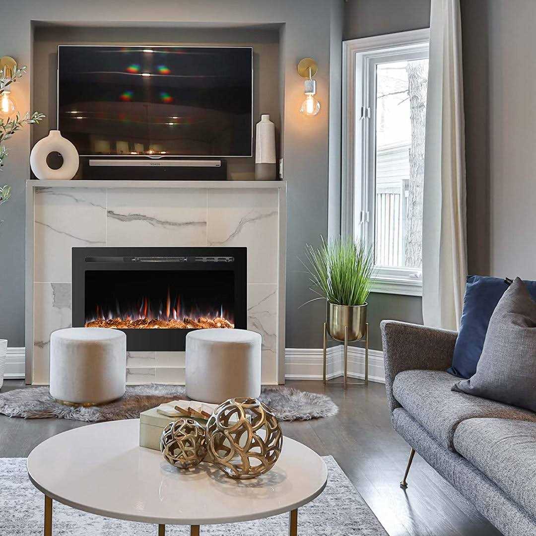 Description This fireplace which has 2 methods to install comes with logs and crystals that resemble burning coals, creating an authentic feel & look of a traditional fireplace. Easy-to-follow instructions are included to help homeowners install the unit on their own. Meanwhile,5 brightness options design and 9 flame effects can be set according to your preference. Also, this electric fireplace is equipped with both a touch screen and remote control, which help you control the heater more conveniently. It has several configurations to match your desired temperature and atmosphere. The features dual modes that allow you to operate the fireplace with or without heat, allowing you to add ambiance to a room without adding warmth. A built-in timer control allows you to shut the unit off after a set period of time, from 1-8 hours. Reduce the uncomfortable caused by high temperature while sleeping. Important: Please remove the fixed sponge behind the glass mirror before powering on.