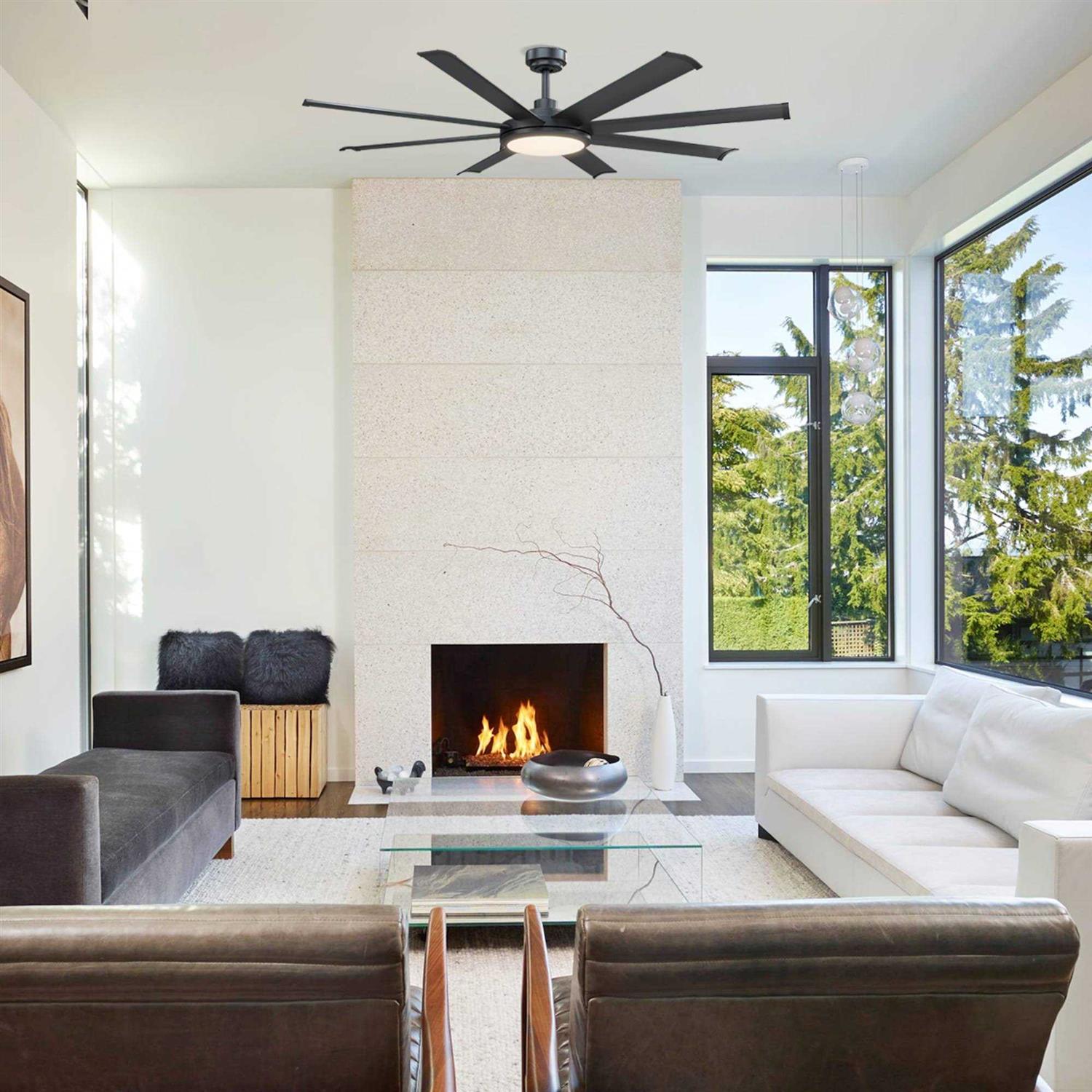 The 60 in. ceiling fan is as innovative as it is beautiful. This modern, great room fan includes a powerful DC motor for improved performance and energy savings when compared with standard AC motor fans. Streamlined with an integrated 24-Watt LED light for added light output, perfect for indoor use. Change fan speeds and light to control your ceiling fan away with the push of the finger using the remote. Control is conveniently placed at your fingertips with a feature-rich remote control that operates the fan’s 6 speeds. Reversible blades keep you comfortable year-round with a handle remote. In warm weather, run the fan counterclockwise to stay cool. In cold weather save money by reversing the ceiling fan direction to push warm air down. Features: Large windmill ceiling fan 60 inch blade span Included 24 Integrated LED bulb Made from metal, and acrylic Matte black fixture finished 8 black aluminum blades 6-speed with remote control 6-inch and 10-inch downrods includes 110 RPM Motor Speed 6200 CFM Airflow 1466 Lumens Downrod-Mount mounting Sloped ceiling mounting up to 15 degrees 156 mm x 12 mm DC motor Voltage: 110V 60 HZ Dimensions: Overall
