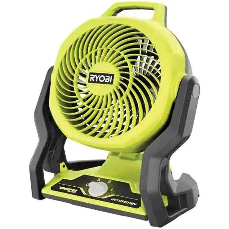 Brand: RYOBIDetails: Expand your RYOBI 18V ONE+ System with the RYOBI 18V ONE+ Hybrid WHISPER SERIES 7-1/2 in. Now part of our WHISPER SERIES, this fan is 44% quieter with 24% greater air velocity to keep you cool no matter the application. Equipped with 3 speed settings and a 160° pivoting head, the airflow can be customized to direct the air where it’s needed. Our new compact design features an integrated handle and multiple hanging options for maximum portability, use, and storage. Best of all, it is part of the RYOBI ONE+ System of over 260 cordless tools that all work on the same battery platform. Fan, and (1) Operator’s Manual. Battery and charger sold separately.UPC: 033287192748Package Dimensions: 287x295x2245