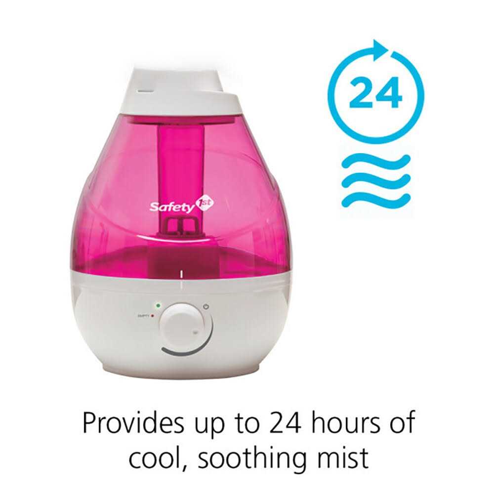 When baby’s nose is congested and sensitive skin is extra dry, you can keep your baby comfortable with the Filter Free Cool Mist Humidifier. It works by raising the room’s humidity level with a cool and gentle mist to help ease cold symptoms, dry skin and itchy eyes. The large tank provides your nursery with up to 36 hours of soothing mist and it features variable mist output control for the moisture level that’s right for your little one. When the humidifier runs dry, the top handle makes it easy to pick up for a quick rinse or refill. Designed for ultimate convenience, the humidifier operates quietly and without the hassle of changing filters. Safety 1st believes parenting should have fewer worries and more joyful moments. As the first and only leader in child safety, Safety 1st is here to give you peace of mind so you can spend less time worrying and more time enjoying every first you experience with your child.