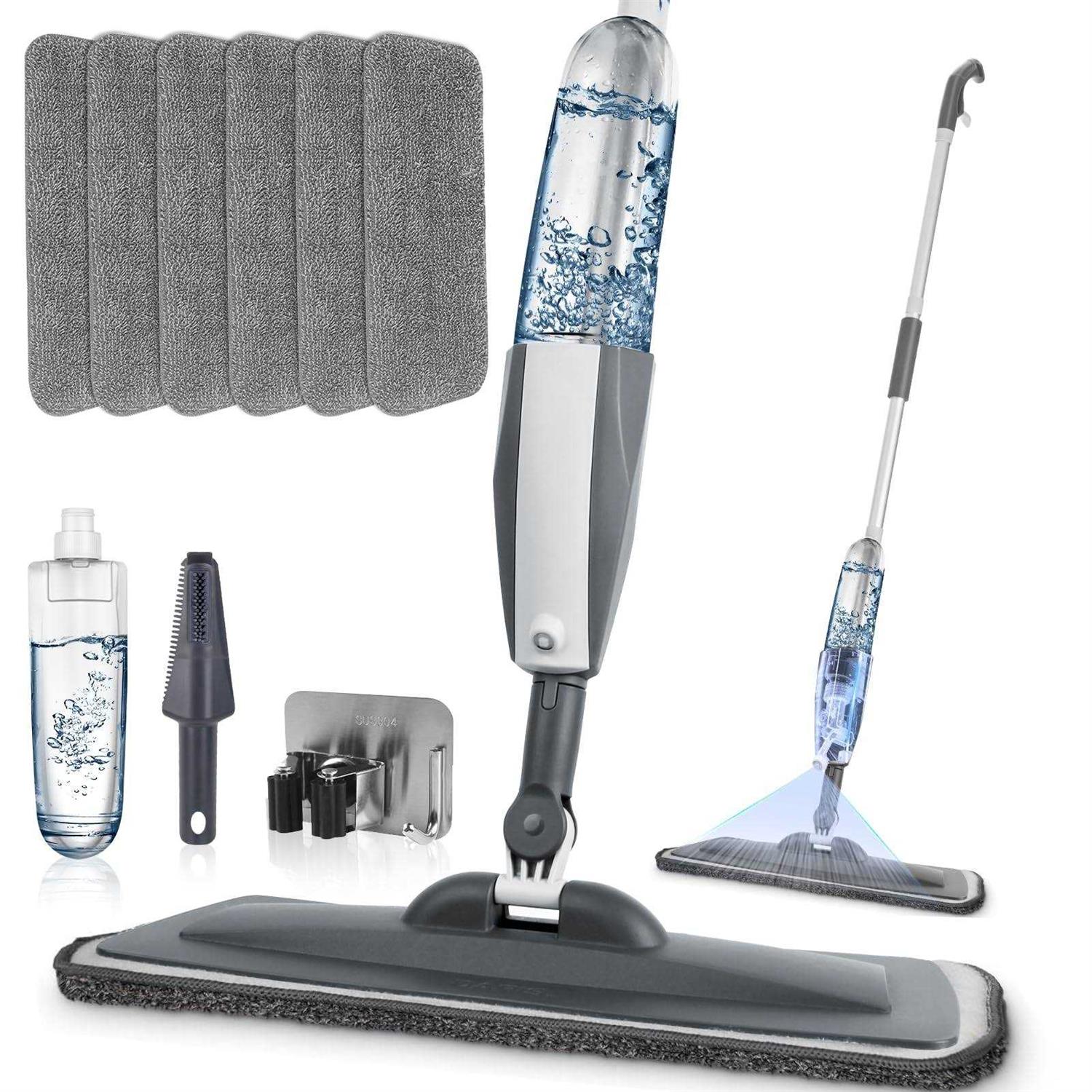 Sdarisb Mops for Floor Cleaning Wet Spray Mop with 6 Washable Microfiber Pads 1 Scraper 1 Mop Holder,Wood Floor Mop for Home or Commercial Dry Wet Use