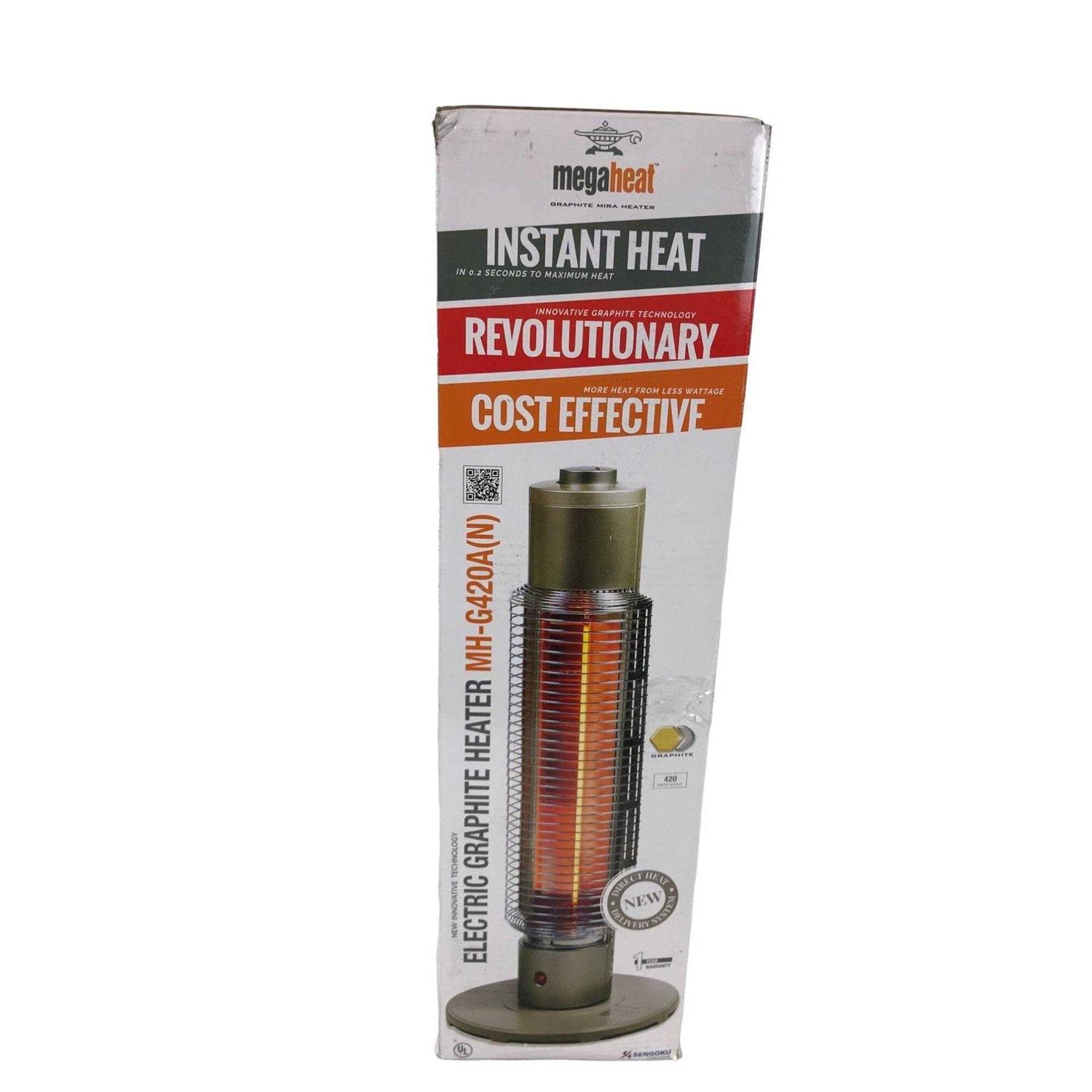 The MegaHeat MH-G420A(N) 420W Graphite Electric Indoor Tower Heater/Champagne uses unique graphite heating technology which provides heat in just 0.2 seconds. This sleek, safe, quiet unit provides instant radiant heat encompasses your body in no time at all, pure enjoyment within your personal space. Experience the best and only graphite heating technology on the market. It heats the body faster which reduces the time of use making it very cost effective. Offers more heat from less wattage with two heat settings. Unit automatically shuts off if tipped over eliminating risk of fire. This MegaHeat Graphite Heater is ideal for small spaces like office, living area, garage, cabin, basement, cottage, etc.
