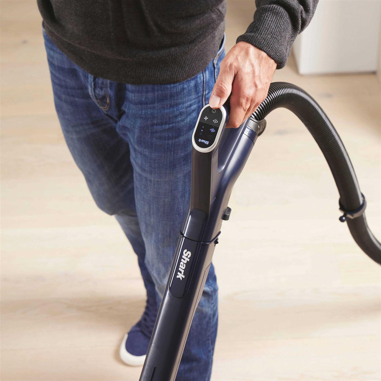 Tackle pet messes, dirt, dust, and crumbs anywhere in your house with the Shark CZ351 Canister Bagless Corded Vacuum. This vacuum cleaner is powerful enough for your everyday household cleaning tasks. With a 25-foot cord, trek this lightweight vacuum all across your home floors, from carpets to hardwood. Once youre finished with the floors, move on to ceilings, stairs, and furniture. Weighing just 9 pounds, just carry the canister for easy portability or use the extendable, flexible wand for reaching under furniture. Smooth Glide wheels rotate 360 degrees for agile maneuverability wherever you go. A simple LED Smart Display on the handle allows you to customize suction levels, switch between floor types, and more. Powerful LED headlights on the nozzle reveal hidden debris, so you’ll never miss a spot. The vacuum features PowerFins flexible silicon fins that dig deep into carpets and directly engage with floors to pick up hair without wrapping problems. The completely sealed HEPA filter system traps and seals dust, dander, and other allergens. Let the Shark CZ351 Canister Bagless Corded Vacuum clean up your tough messes for you.