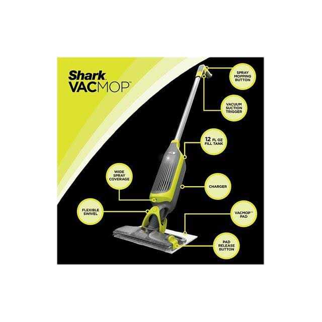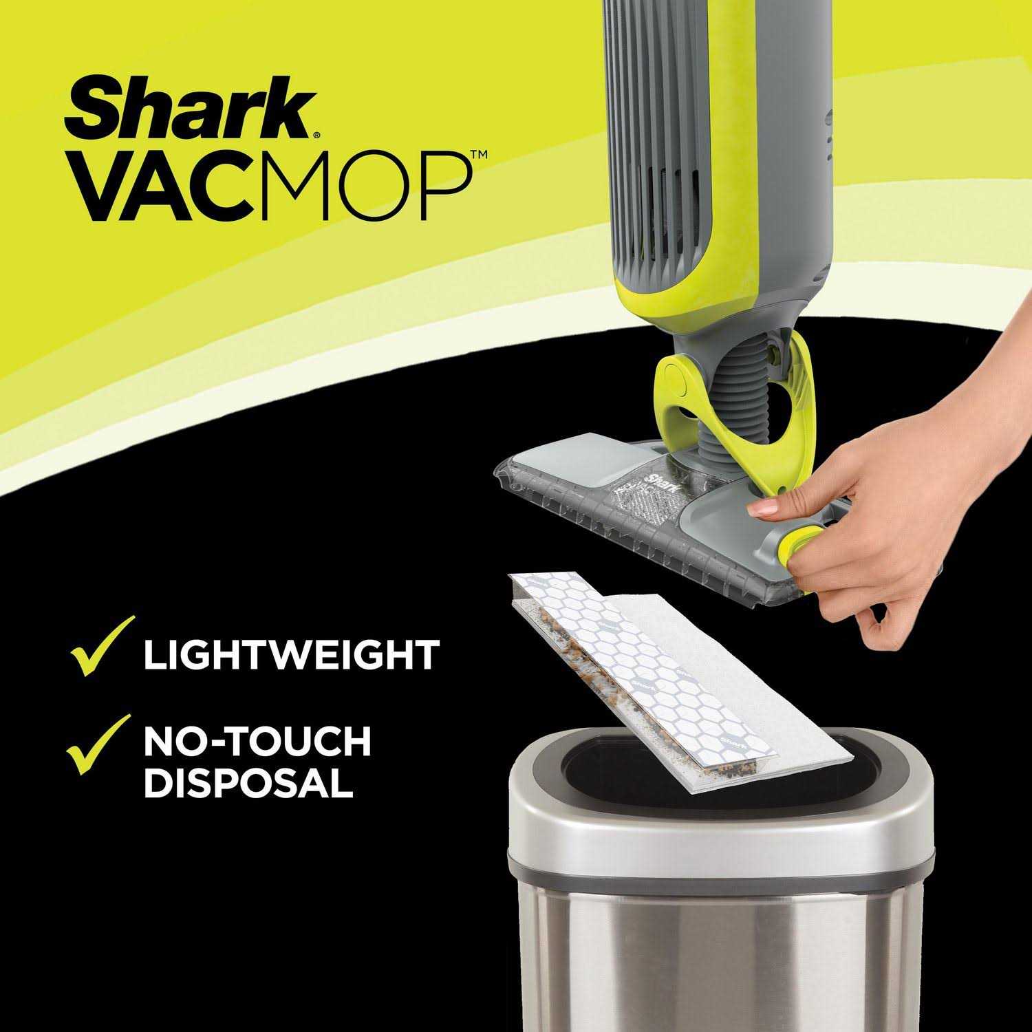 The Shark VACMOPTM is perfect for busy households looking for an easy way to clean up spills and ground-in dirt fast. The cordless vacuum mop combines powerful suction and spray mopping all in one disposable pad which eliminates the need for heavy, unwieldy appliances. Simply vacuum dry debris, scrub wet messes and toss the used pad for convenient, hygienic cleaning. The kit includes cordless charging, two disposable VACMOPTM pads and 355 ml of multi-surface hard floor cleaner so you can get cleaning right away.