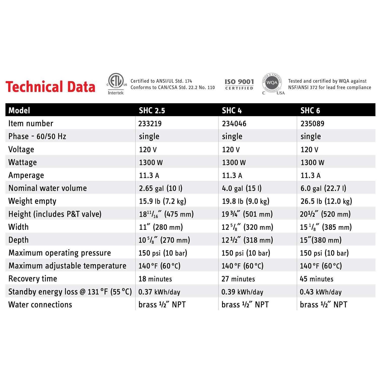 An SHC Mini-Tank Water Heater excels at supplying hot water as a stand-alone supply of hot water, or in-line as a booster to a hot water tank. It can be used in food trucks and recreational vehicles, or as a buffer in a DHW recirculation loop. It saves water and electricity by putting hot water right where it is needed. The small tank and excellent insulation reduces stand-by losses compared with larger tank water heaters. Used in conjunction with a hot water tank it allows immediate hot water draws without waiting for a long pipe run to purge itself of cold water. Lightweight and compact, an SHC easily mounts under or near a sink with its included bracket. Once filled with water, it simply plugs into a 120-Volt outlet. No special wiring is required. A T and P valve is pre-installed. A world leader in advanced water heating technology since 1924, Stiebel Eltron’s engineering excellence and high-quality manufacturing results in products fulfilling the highest expectations of performance and reliability.
