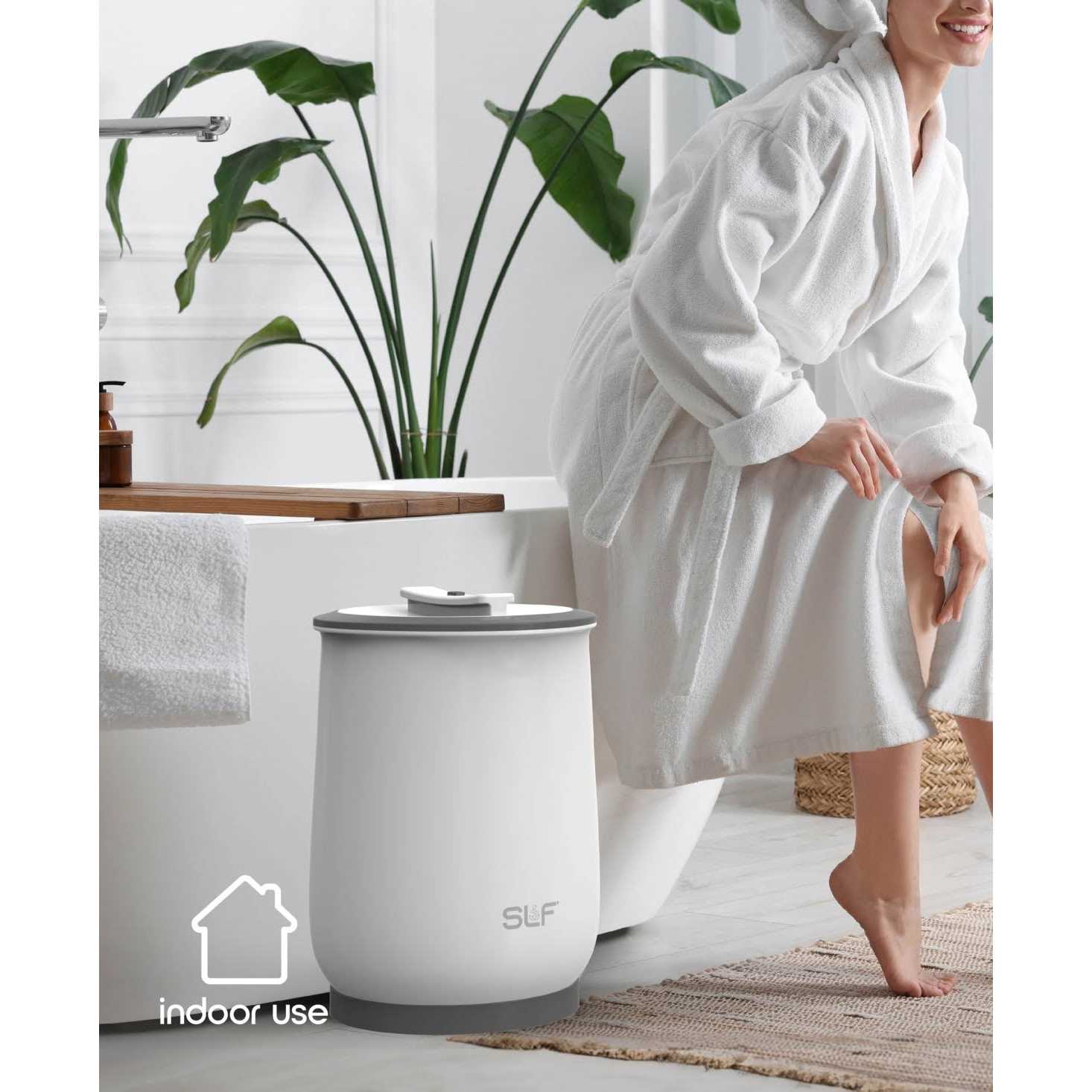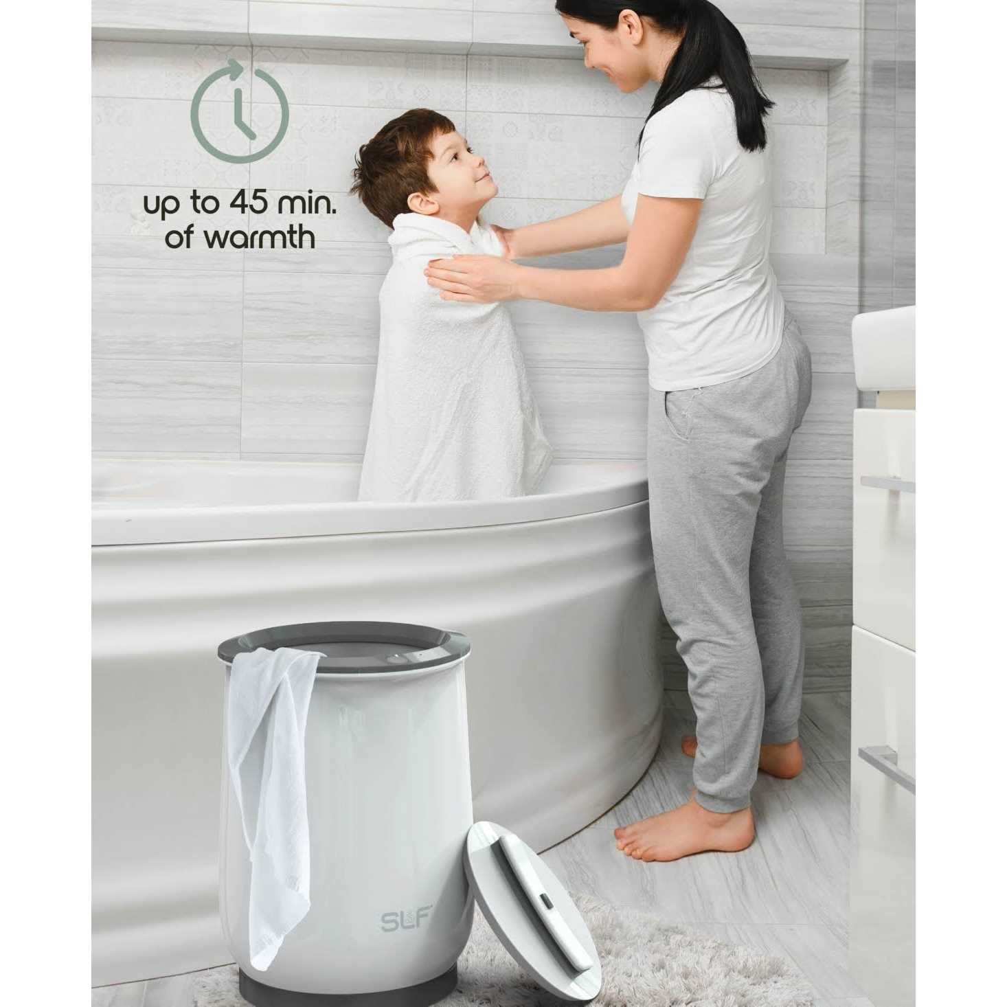 Enjoy the luxurious comfort of a warm towel after every bath with the SLF Luxury Towel Warmer! Simply place your favorite towel, blanket, or bathrobe inside of the large 20L bucket, adjust the heating timer to your liking, and get ready to be enveloped in a cozy, toasty cocoon. This towel warmers one-button operation makes it simple to use, while the pull-up towel basket makes retrieving your towel safe and easy! With the SLF Luxury Towel Warmer, you can experience the spa-worthy luxury of freshly warmed towels in your own home.