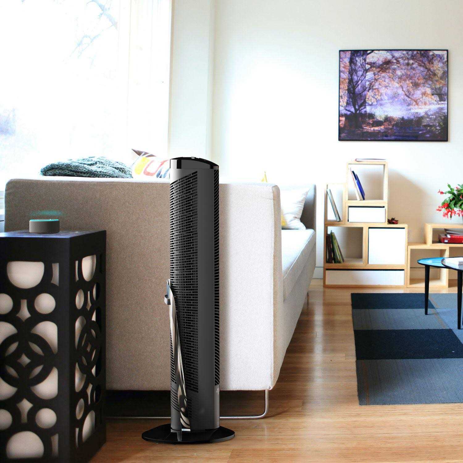 A smart way to stay comfortable, this sleek whole-room tower circulator offers oscillation when you need it, multiple speed settings, intuitive controls, three timer options, smooth oscillation, a carry handle, and Alexa compatibility. From Vornado.